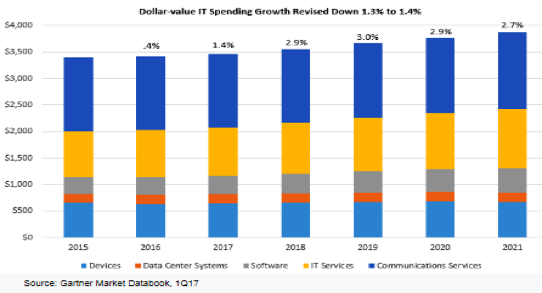 联接与通信业务是企业市场的刚需。这一点我们从Gartner2017年Q1发布的企业IT支出分布报告中可以看得很清楚,仅通信业务的占比就始终超过40%(见图3)。同时我们认为企业联接与通信业务也是运营商的传统优势业务,是运营商拓展企业市场的抓手。以BT为例,在BTGS(瞄准全球MNC跨国公司)的业务中,BT Connect(专线,37%)和BT One(企业通信,36%)占据70%以上的收入;在BT Business&PS(UK和Ireland的大企业和SME)的业务中,联接和通信业务占50%的收入。同样,在TLF,联接与通信业务占比也超过70%。因此,我们建议电信运营商践行Cloud+X战略从联接与通信业务着手,逐步构筑整体的企业服务能力。