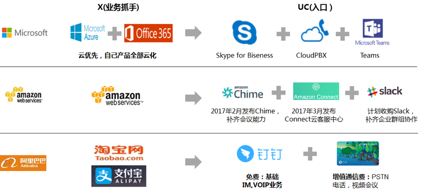 图4. OTT在公有云上纷纷布局企业云通信,构建企业一站式入口