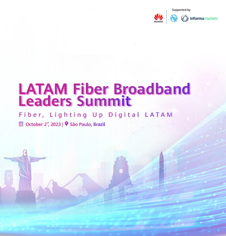 We sincerely invite you to attend the LATAM Fiber Broadband Leaders Summit to be held on Oct. 2nd, in São Paulo, Brazil. The summit will be hosted by Huawei and supported by ITU, themed as "Fiber, Lighting Up Digital LATAM".