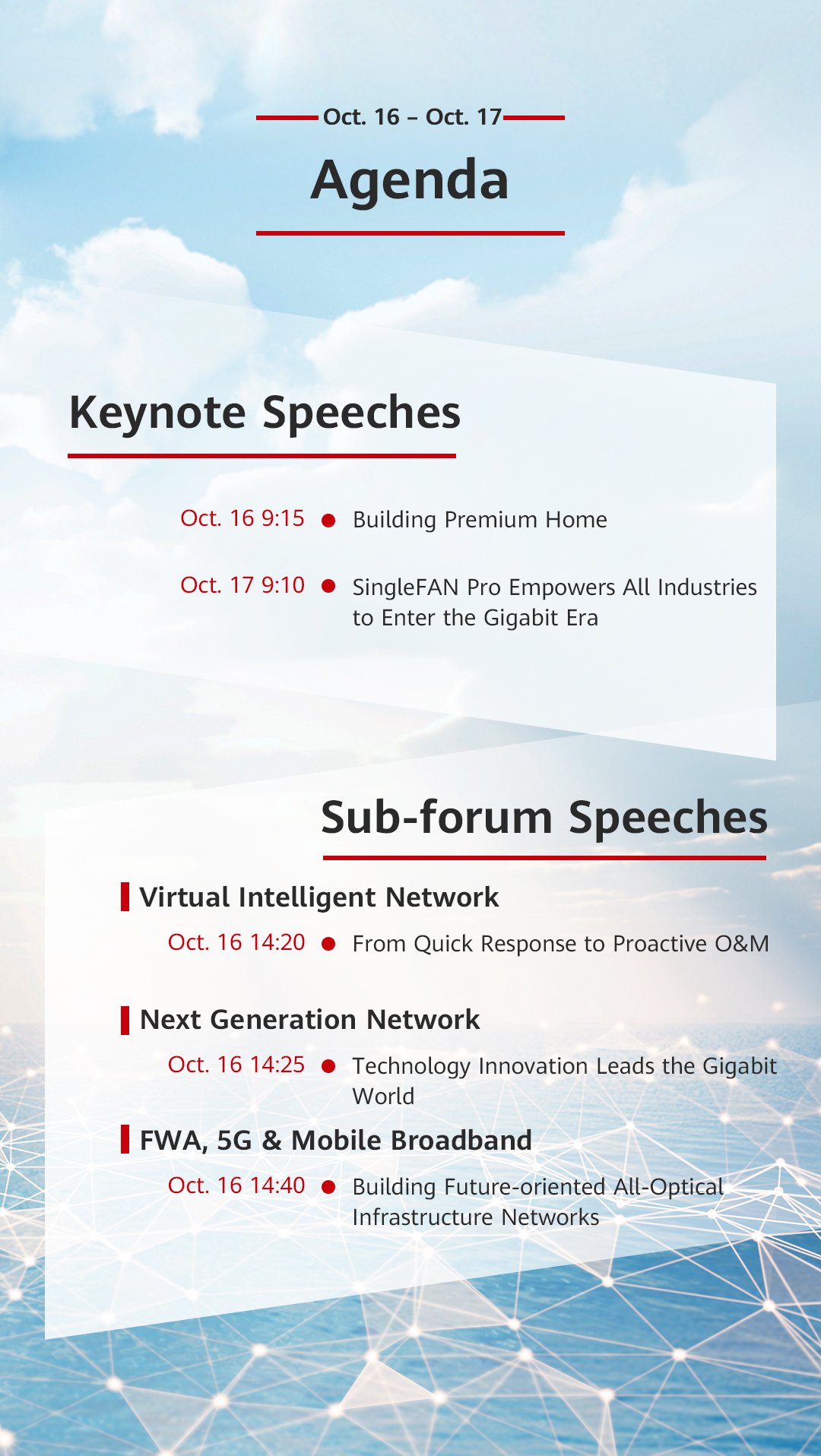 Guests will discuss the development and trends of F5G in the gigabit era and share practices and cases of F5G. You will have a first-hand insight into the gigabit industry.