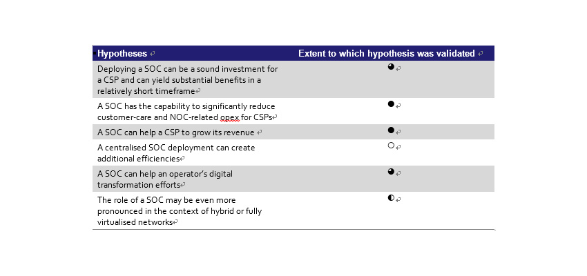 Hypothesis 2: A SOC has the capability to significantly reduce customer-care and NOC-related opex for CSPs in a short period of time
