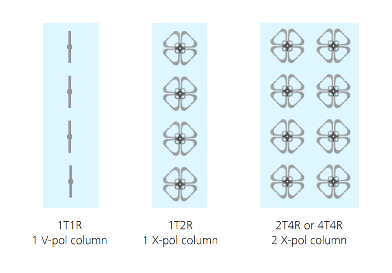 At the very beginning of the cellular network, antennas with only one vertical-polarized dipole column are applied to support 1T1R (1 transmitting and 1 receiving) when the wireless environment is not complex. With the development of urban informatization, antennas supporting cross-polarized dipole columns (1T2R) are developed to deal with the multi-path effect of buildings and vehicles (see figure 2).