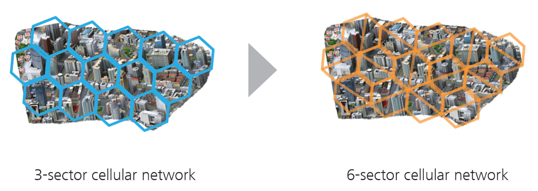 Generally, the 2G network had been designed for voice services only, while the 3G network, such as UMTS, was first to combine circuit-switched voice services and packed-based data services, and therefore becomes the most developed network all around the world. However, some 3G networks are quite overloaded due to limited spectrum resources of each operator. In this situation, 6-sector solutions can be adopted to meet the capacity expansion requirements (see figure 3).
