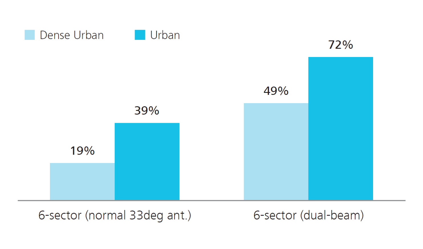 For a 6-sector cellular network, a well-designed dual-beam antenna can be adopted to enhance the network performance and simplify antenna deployment and installation compared with traditional 33o horizontal beamwidth antenna in the following aspects: