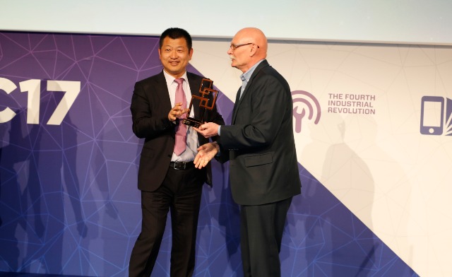Huawei accepting the Best Mobile Infrastructure award at MWC 2017